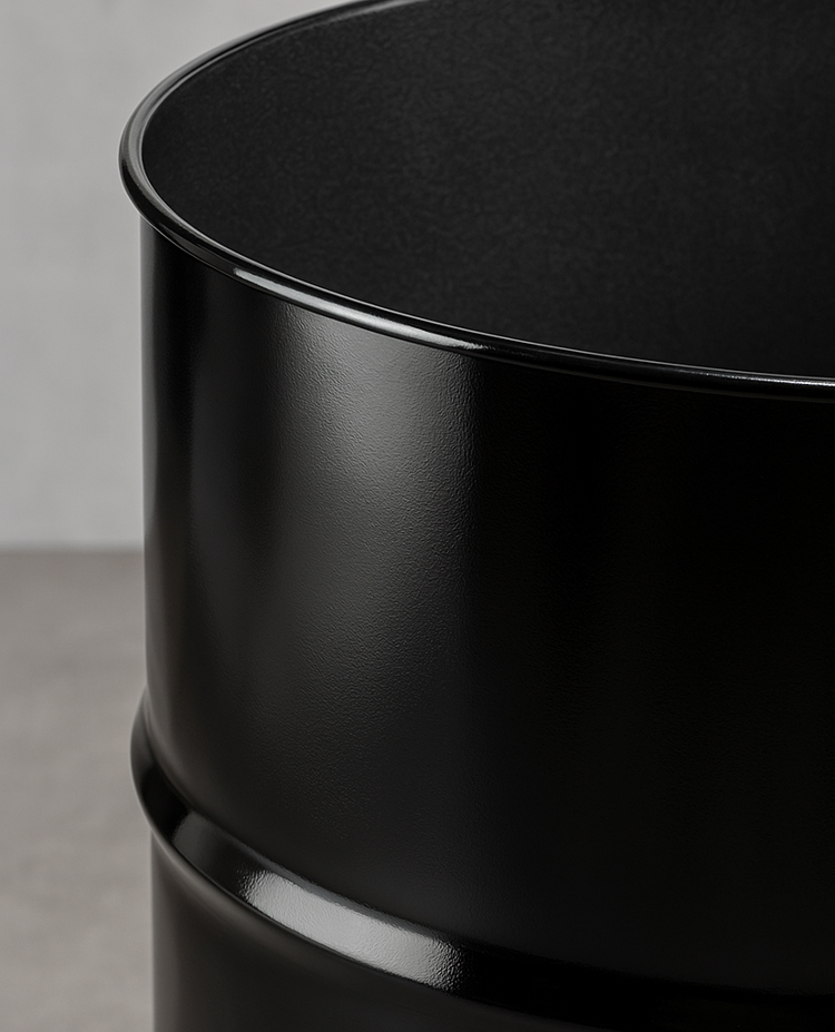 Bringt Stil und Stärke in jeden Raum – mit der schwarzen Stahltonne!